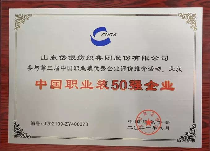 岱銀集團(tuán)榮獲“中國職業(yè)裝50強(qiáng)企業(yè)”榮譽(yù)稱號