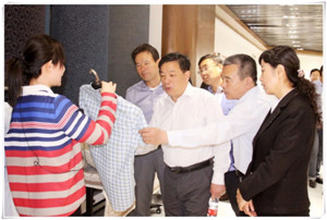 岱銀集團副總經理趙煥曦詳細匯報了企業(yè)在科技創(chuàng)新、智能制造、大數據高級定制和智能吊掛MES云平臺系統(tǒng)方面所取得的成績,并陪同參觀考察了岱銀天梭工業(yè)園區(qū)的雷諾高檔西服車間以及企業(yè)展廳。