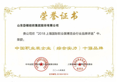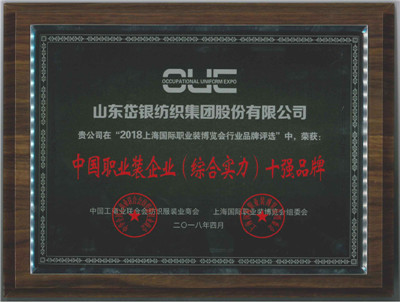 本次盛會以“集合產(chǎn)業(yè)鏈優(yōu)勢、推動供應鏈模式的變革與創(chuàng)新、引領(lǐng)職業(yè)裝行業(yè)新生態(tài)”為主題,揭曉了“2018中國職業(yè)裝企業(yè)(綜合實力)十強品牌”,山東岱銀紡織集團股份有限公司以雄厚的品牌實力及團購職業(yè)裝定制優(yōu)勢,經(jīng)過層層審核評選脫穎而出,榮獲“中國職業(yè)裝企業(yè)(綜合實力)十強品牌”稱號,這標志著集團在國內(nèi)職業(yè)裝領(lǐng)域具有領(lǐng)先的地位。