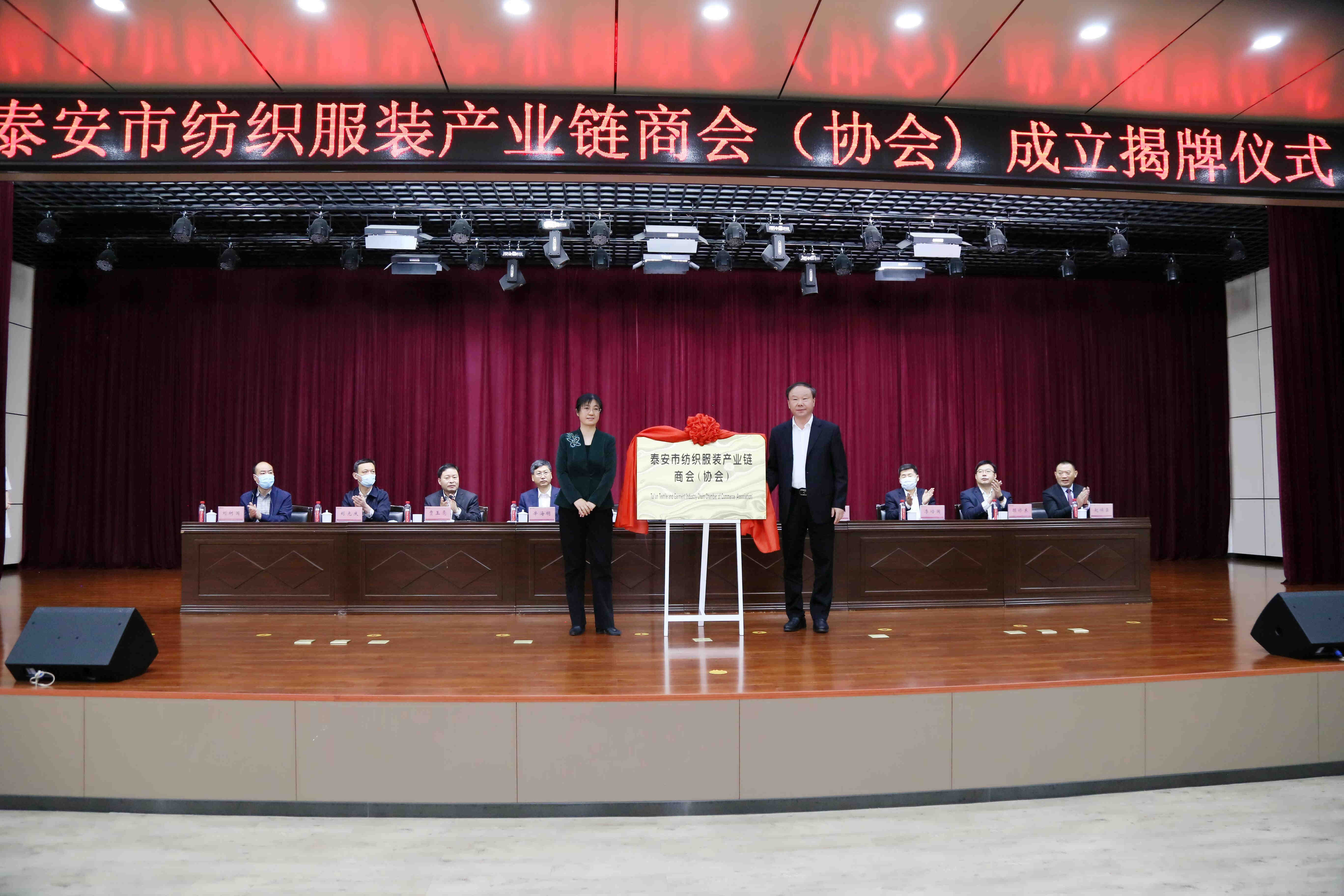 市委常委、統(tǒng)戰(zhàn)部部長,市紡織服裝產(chǎn)業(yè)鏈鏈長成麗同志,泰安市新型工業(yè)化強(qiáng)市建設(shè)推進(jìn)委副主任、黨委書記,市一級巡視員宋洪銀同志為商會(協(xié)會)揭牌。