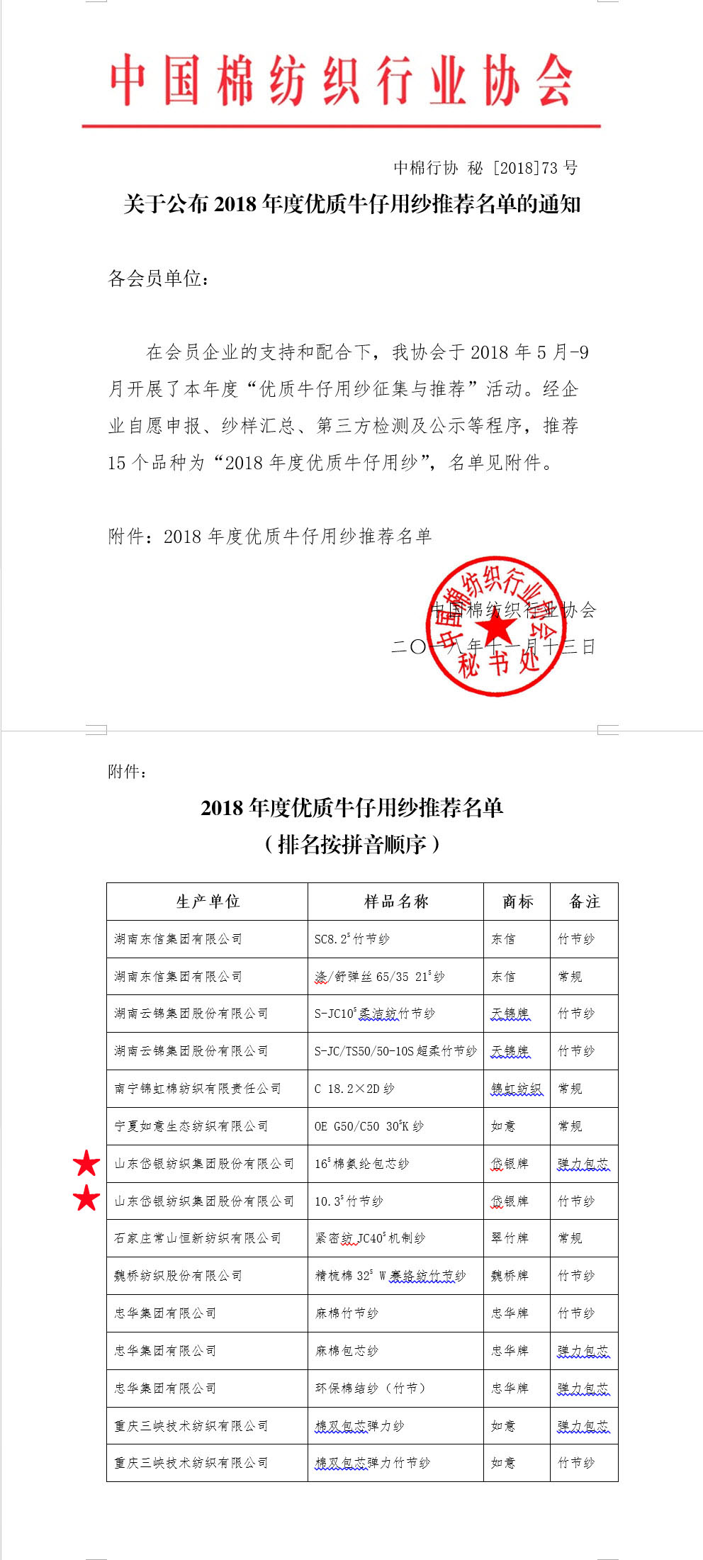 岱銀牌牛仔用紗榮登“2018年度優(yōu)質(zhì)牛仔用紗推薦名單”